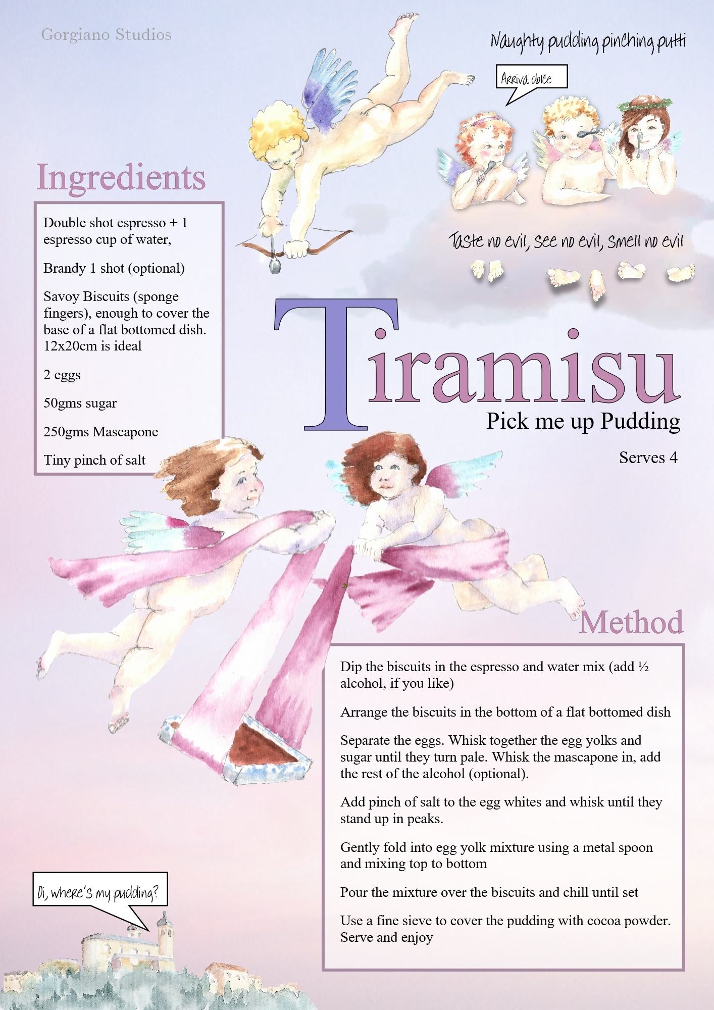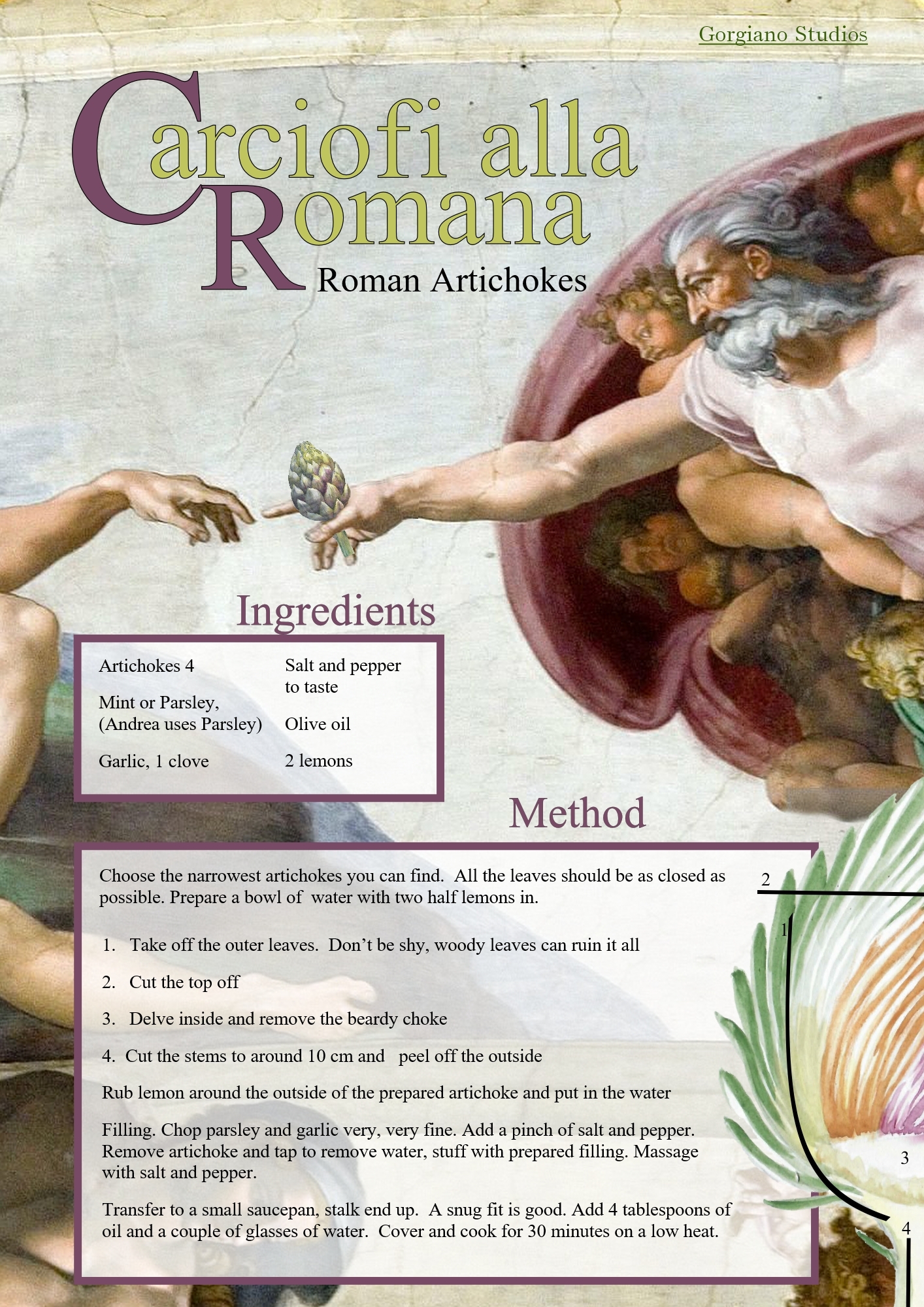 Parmgiana recipe from Gorgianos Studios, delicious Italian food from paintingholidaysitay.com illustrated by Caroline Crawford