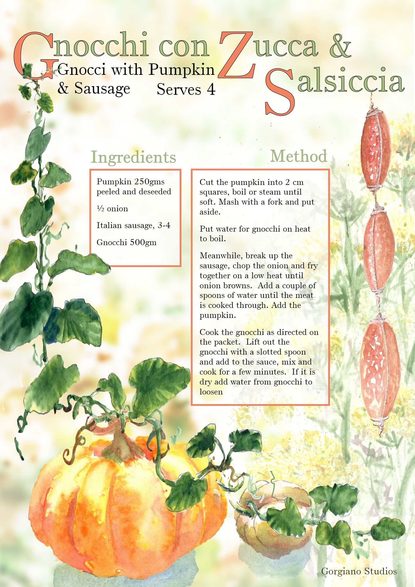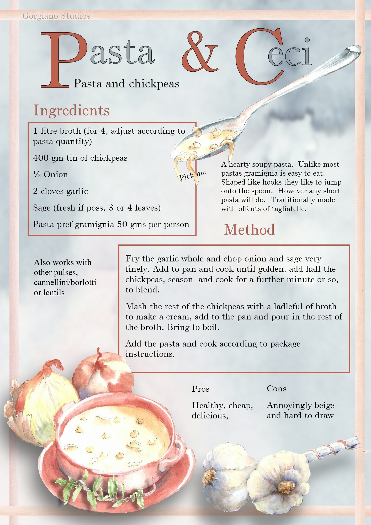 Pasta Arrabbiata, Gorgiano Recipe card, painting holiday italy