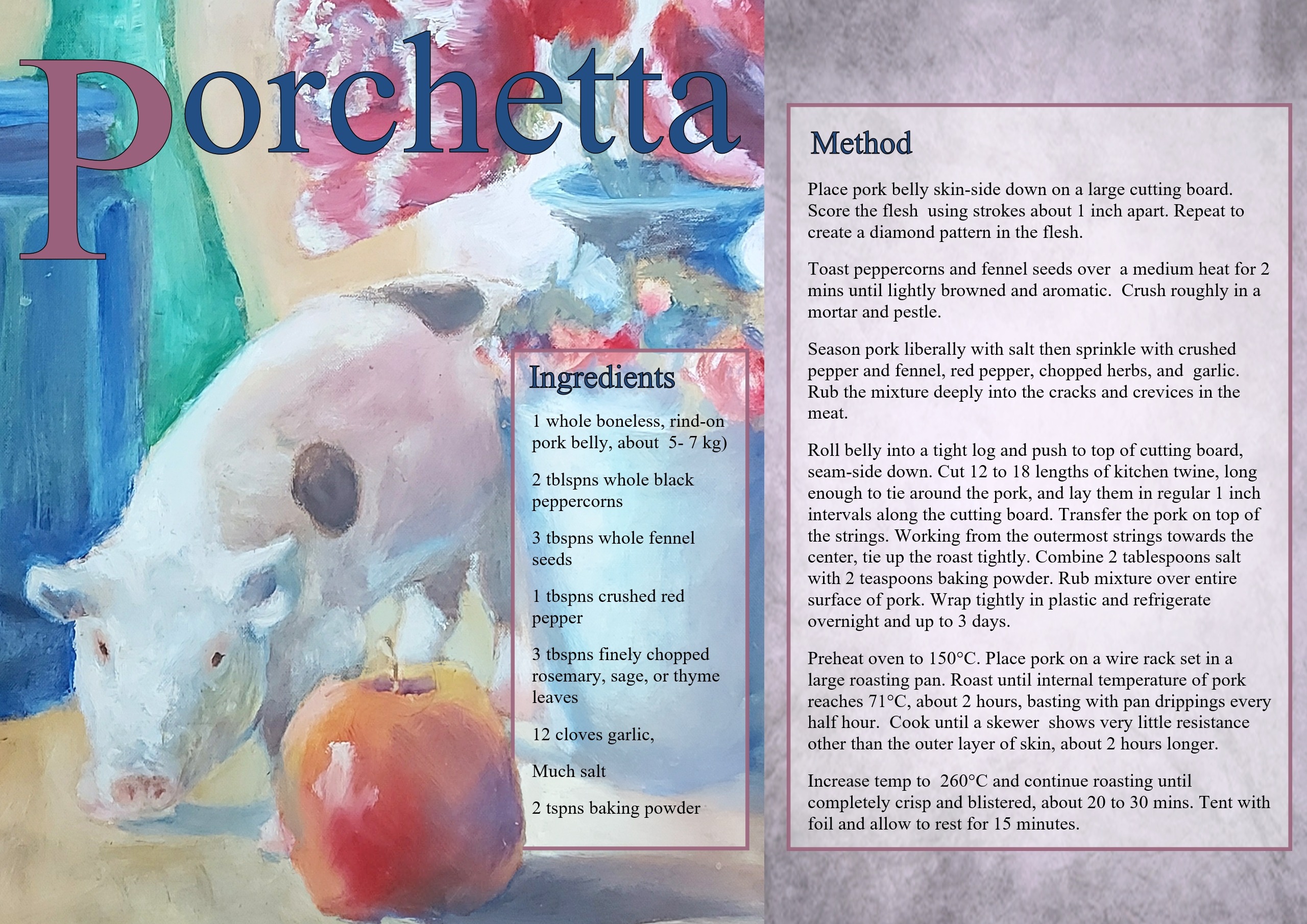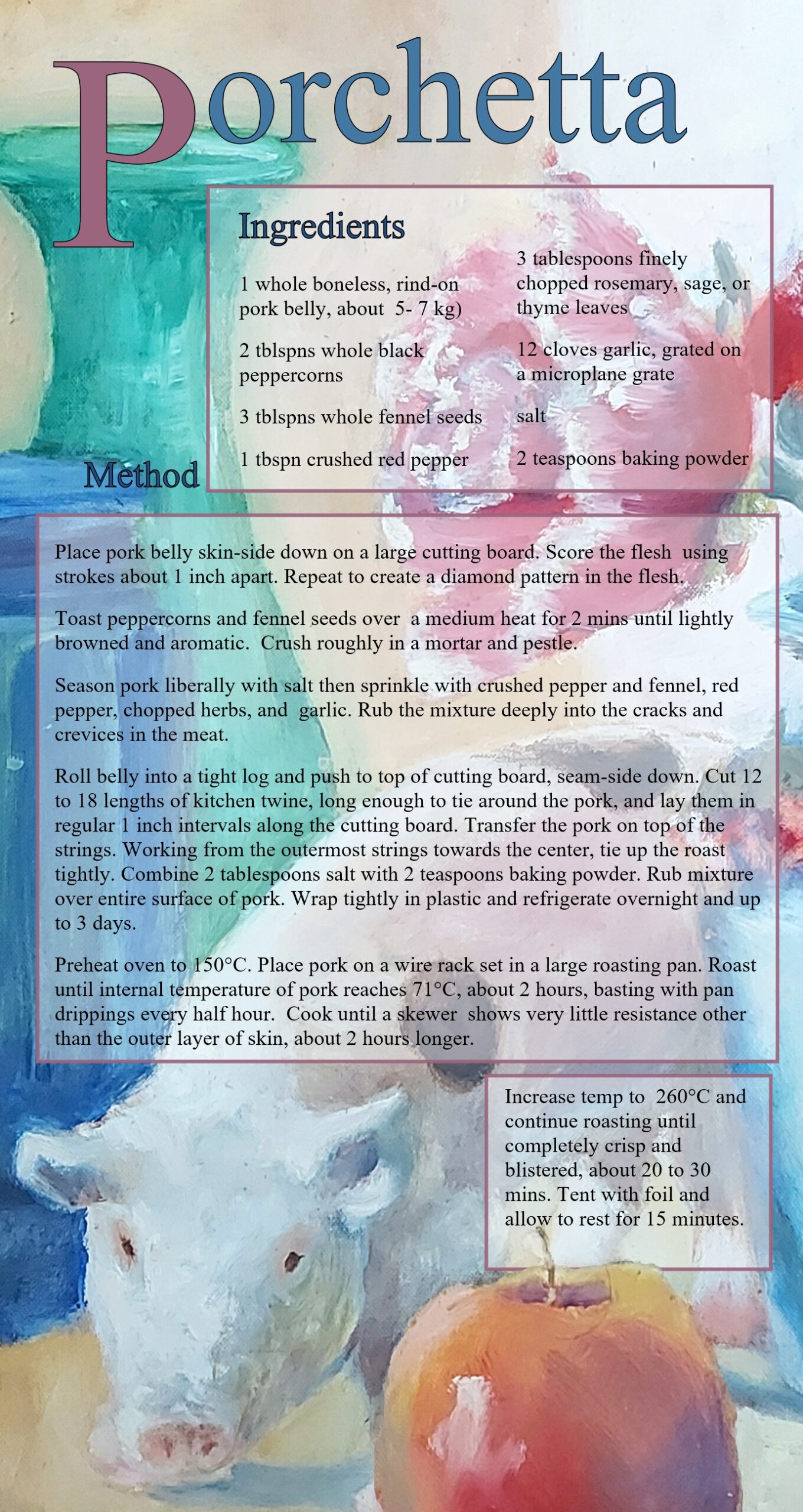 Painting Holidays Italy > Gorgiano Recipe cards > Porchetta Recipe, Gorgiano, Italian Roast pork